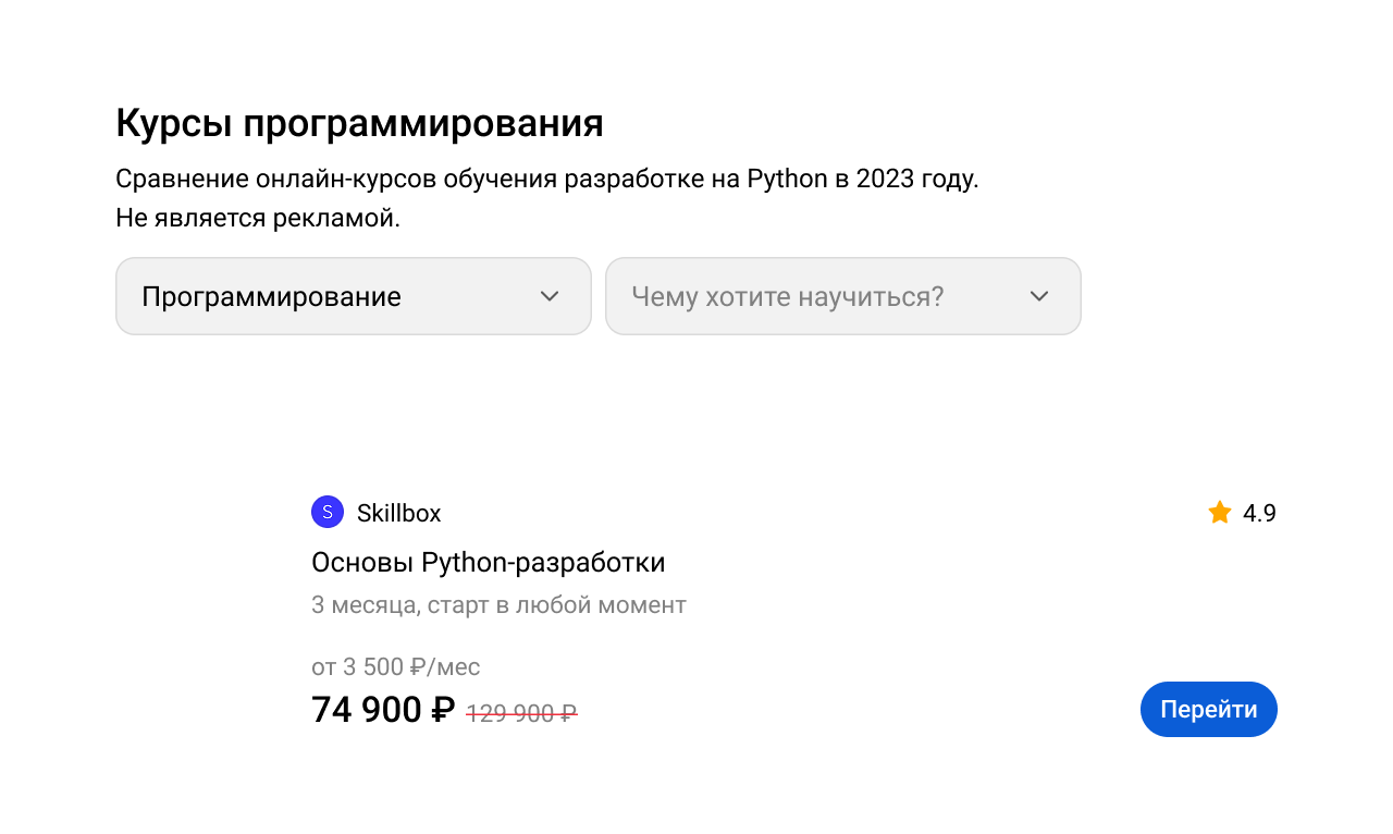 В случае с vc.ru мы решили сфокусироваться на простоте интерфейса и репутации, а не на перегруженных карточках курсов.