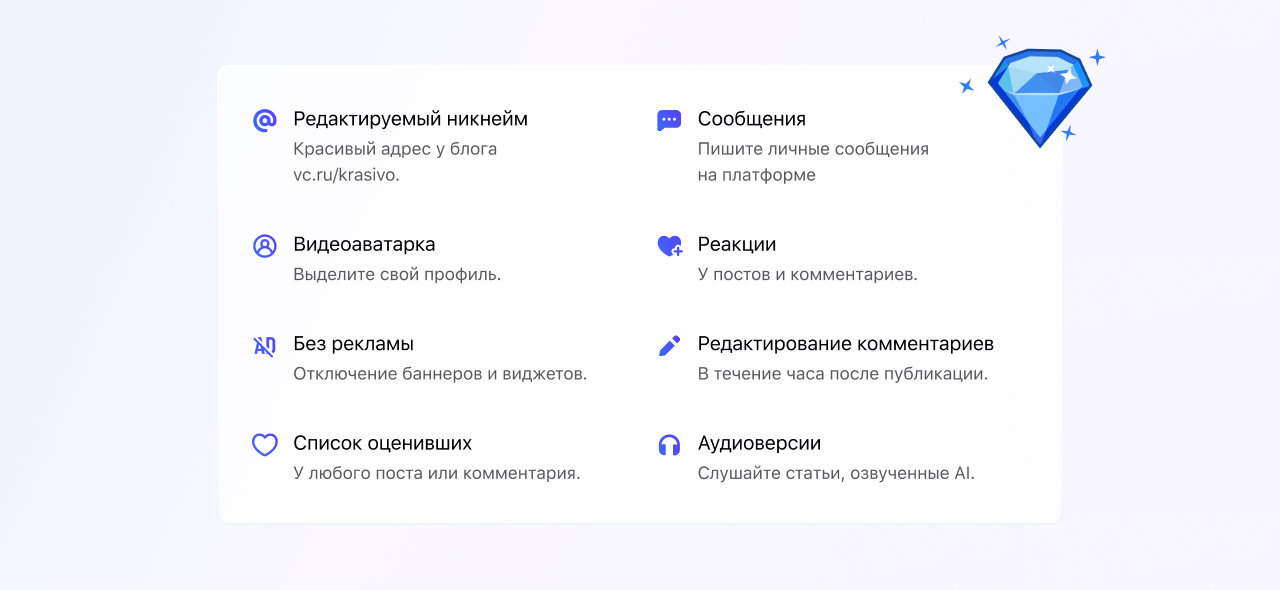 На DTF есть платная подписка — она расширяет базовый функционал пользователей. Так, например, можно получить доступ ко всем вариантам реакций, больше времени на редактирование комментариев и возможность слушать аудио-версии постов.